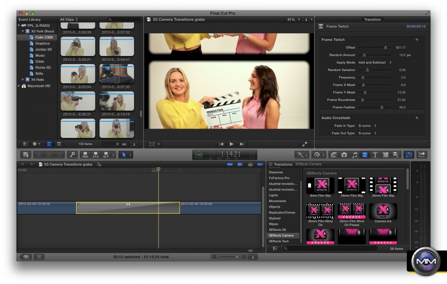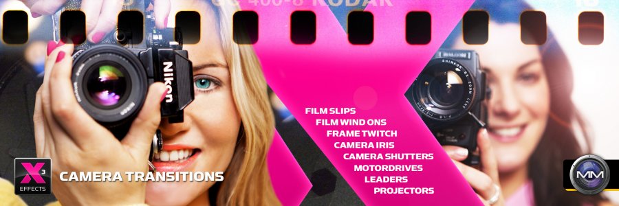 XEffects Camera Transitions are 28 effects for Final Cut Pro X that reproduce still & movie camera film effects as well as still & movie projector effects.